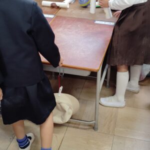 今日は年長児が田辺小学校へ行き、「どんぐりまつり」に参加しました。