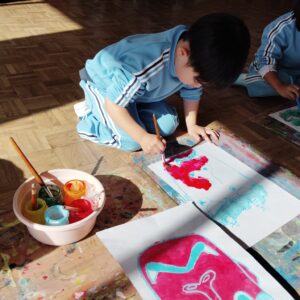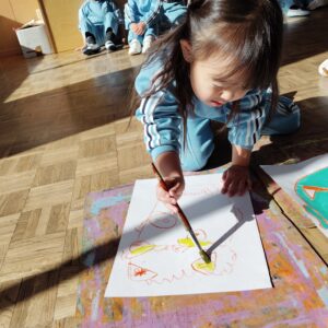 子どもたちは「鬼さんどんな顔してるかなあ」や「笑ってる鬼さんにしよかな!」「いや怒ってる鬼さんにする!」など言いながら、とても楽しそうに描いていました!