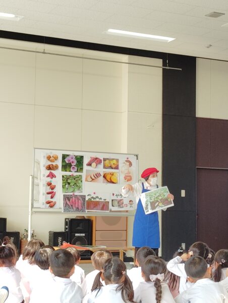 今日は月に一度の「食育の日」でした。栄養士さんに「さつまいものお話」をしてもらいました。じゃがいも・さといも・さつまいも」の写真がでてきて、どれがさつまいもでしょう?というクイズにも、元気に答えていました。また、「じゃが […]