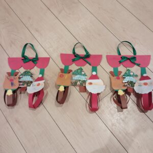 こぐま組ではクリスマスの製作を作りました。輪っかにする部分は難しそうにしていましたが、子どもたちも頑張って挑戦していました!かわいい作品に仕上がり、持ち帰る日を楽しみにしていました!